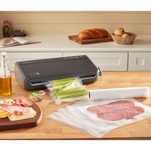 This vacuum sealer also features a built-in cutter so you can easily create custom-sized bags. Preserve everyday food leftovers and bulk shopping in the fridge freezer or pantry with the FoodSaver FM2100 Manual Vacuum Sealing System - the solution to all your food storage needs. Please give us a call at 877 777-8042 we would love to hear more about your experience.